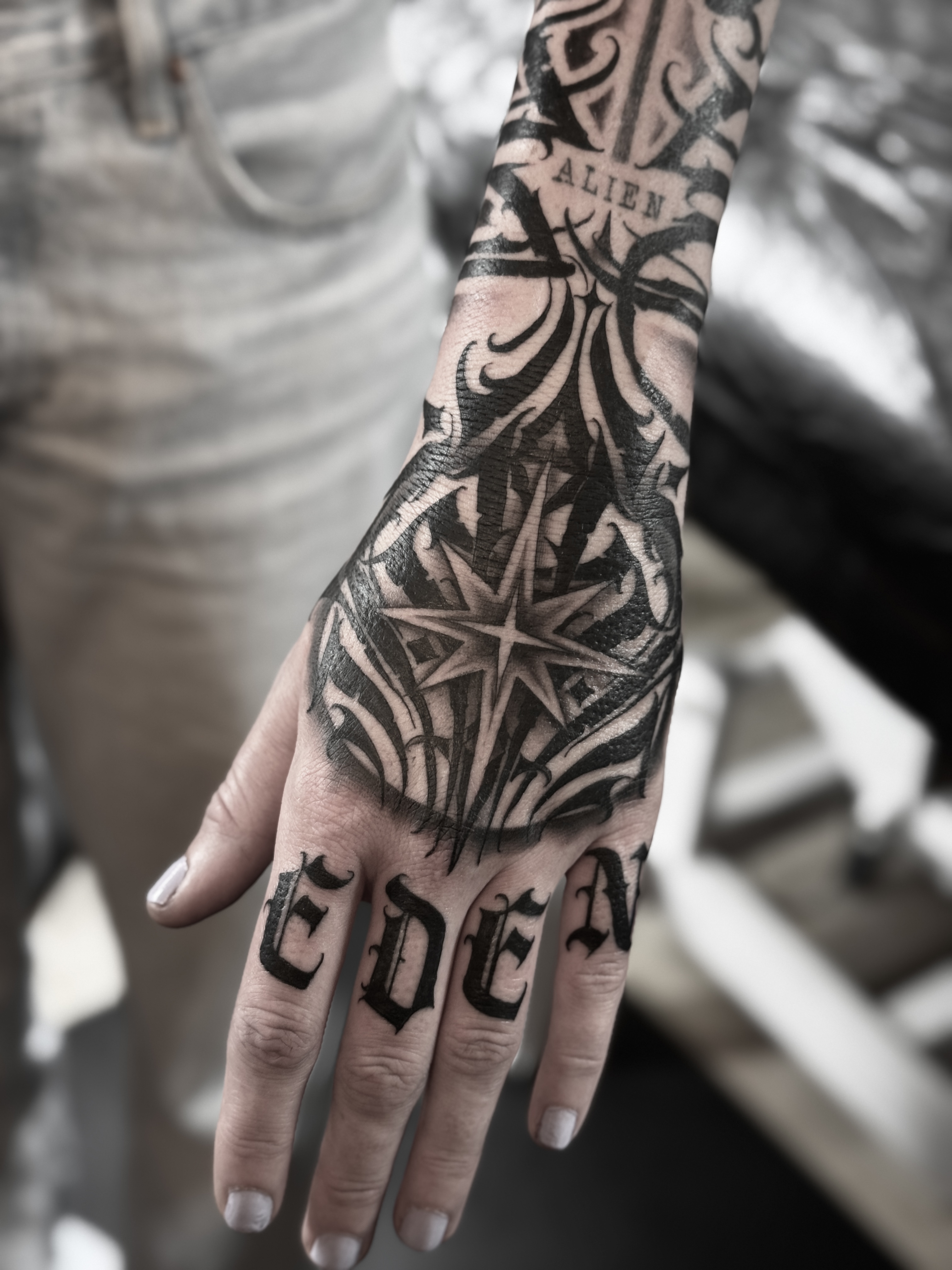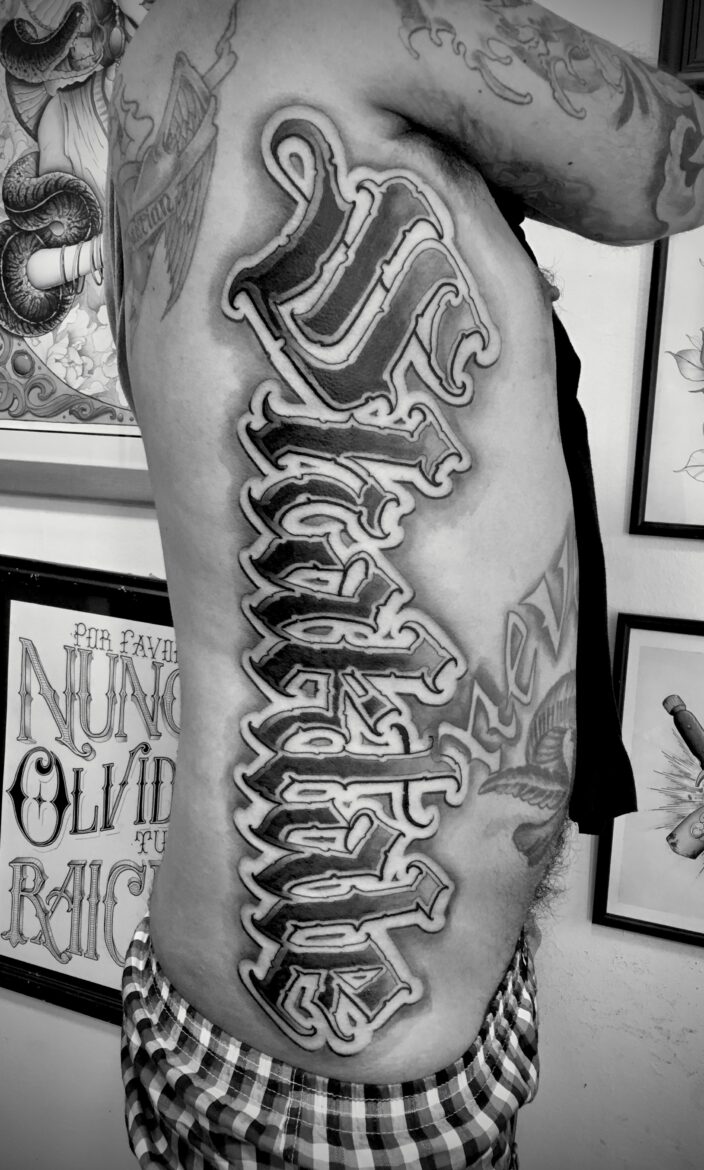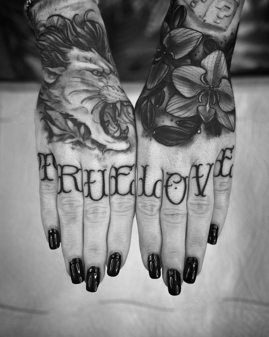 - liebt Lettering und Freehand-Lettering und Neotraditional Tattoos